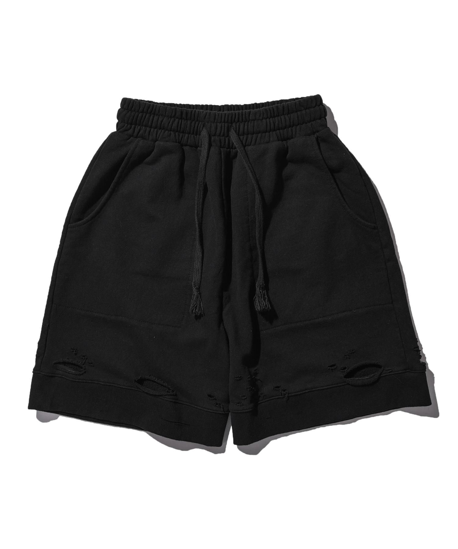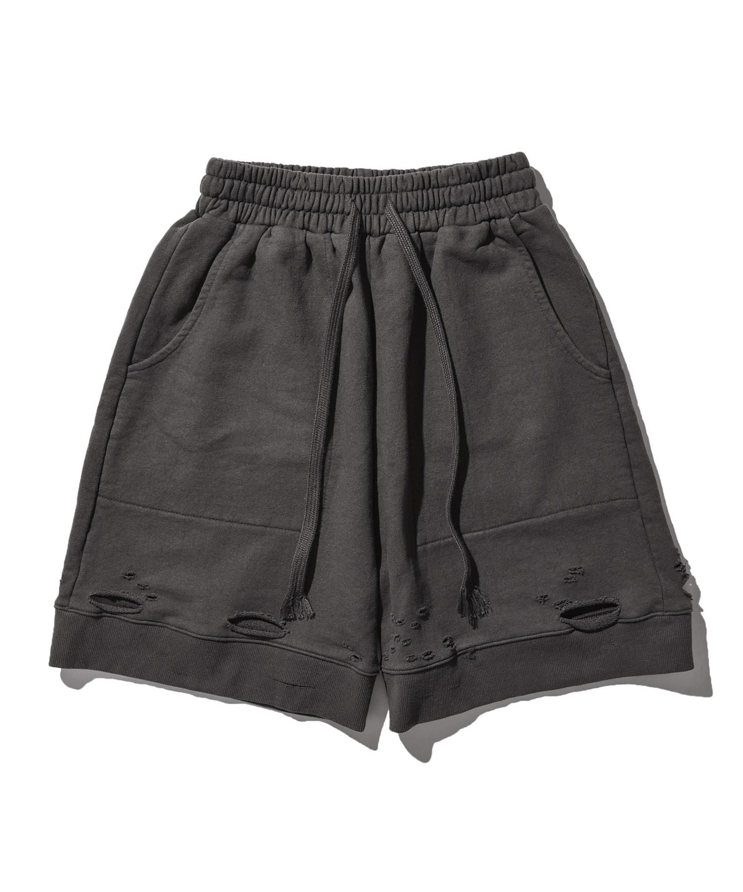 - 裾周辺にダメージ加工が施されたスウェットショーツ
