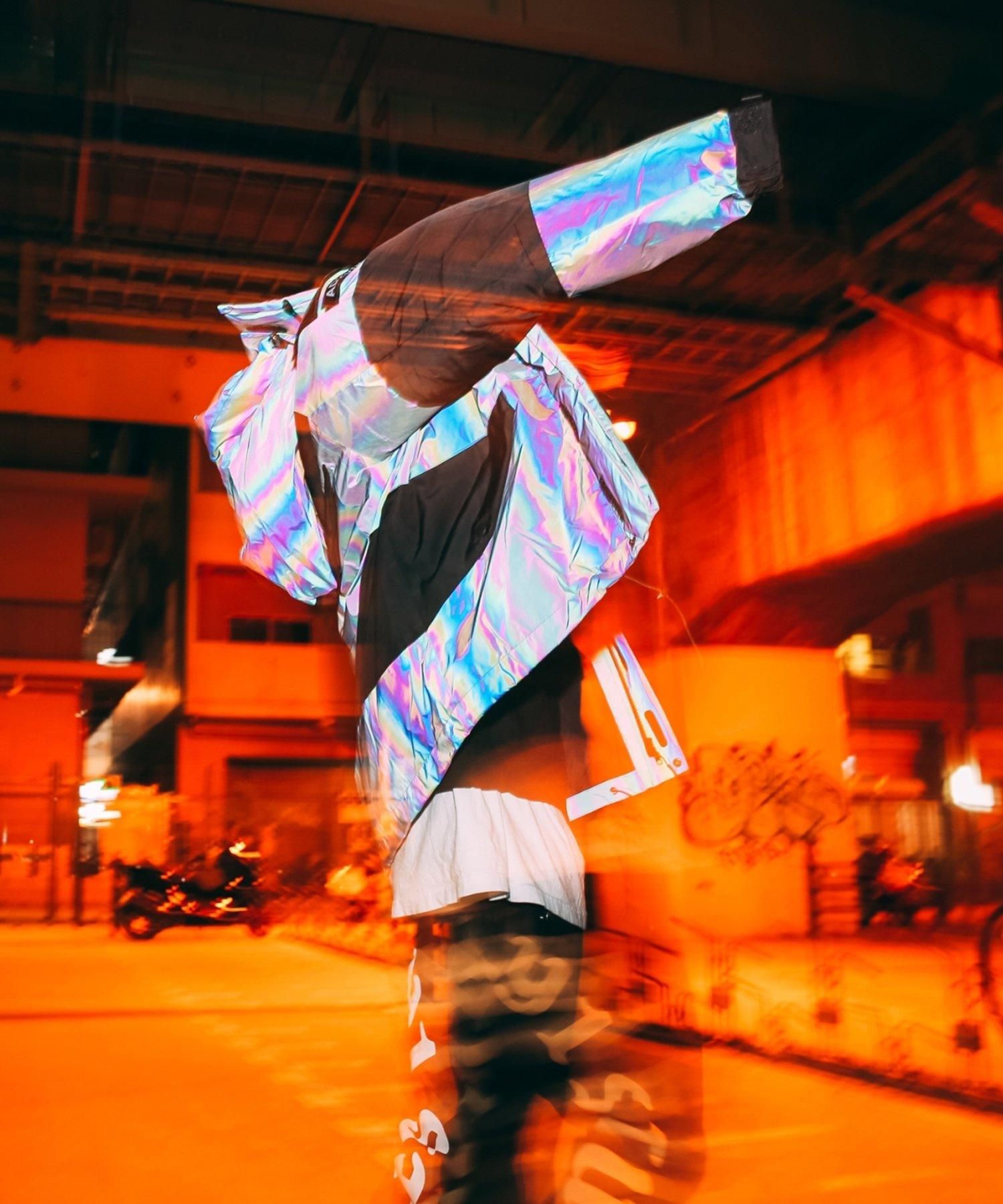- 全面オーロラリフレクター生地を使用したインパクトのある一枚