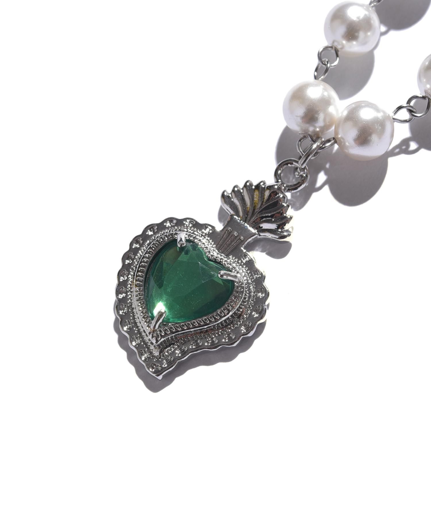 - ハート型に象られたストーンを使用したパールネックレス