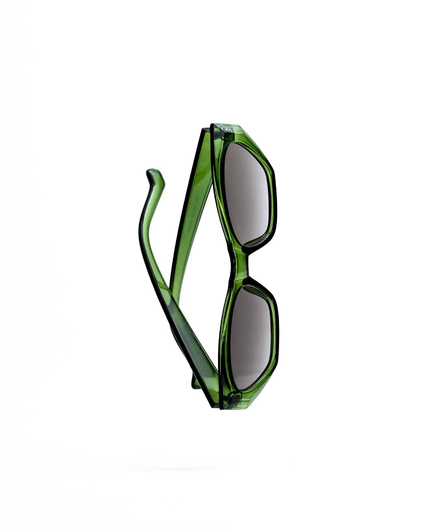 - フレームに傾斜をつけ3Dな雰囲気を演出したGREY型サングラス
